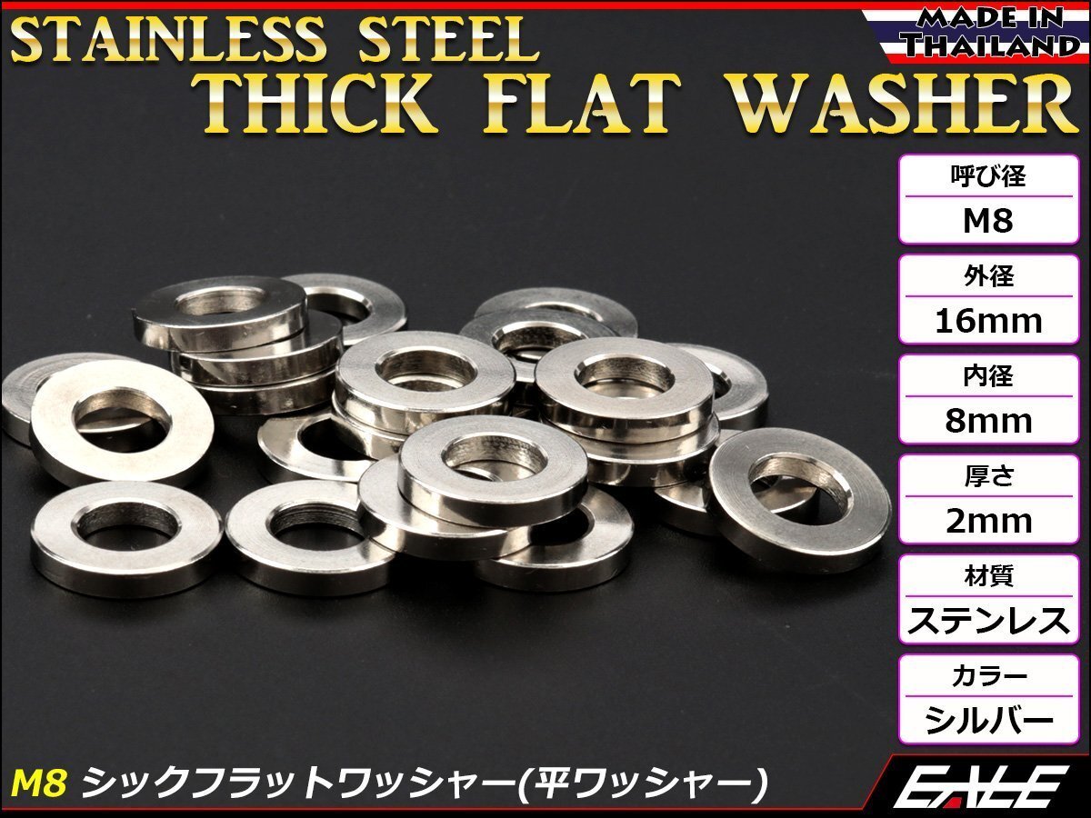 - SUSステンレス M8 平ワッシャー シックフラットワッシャー シルバー 外径16mm 厚さ2mm TF0002