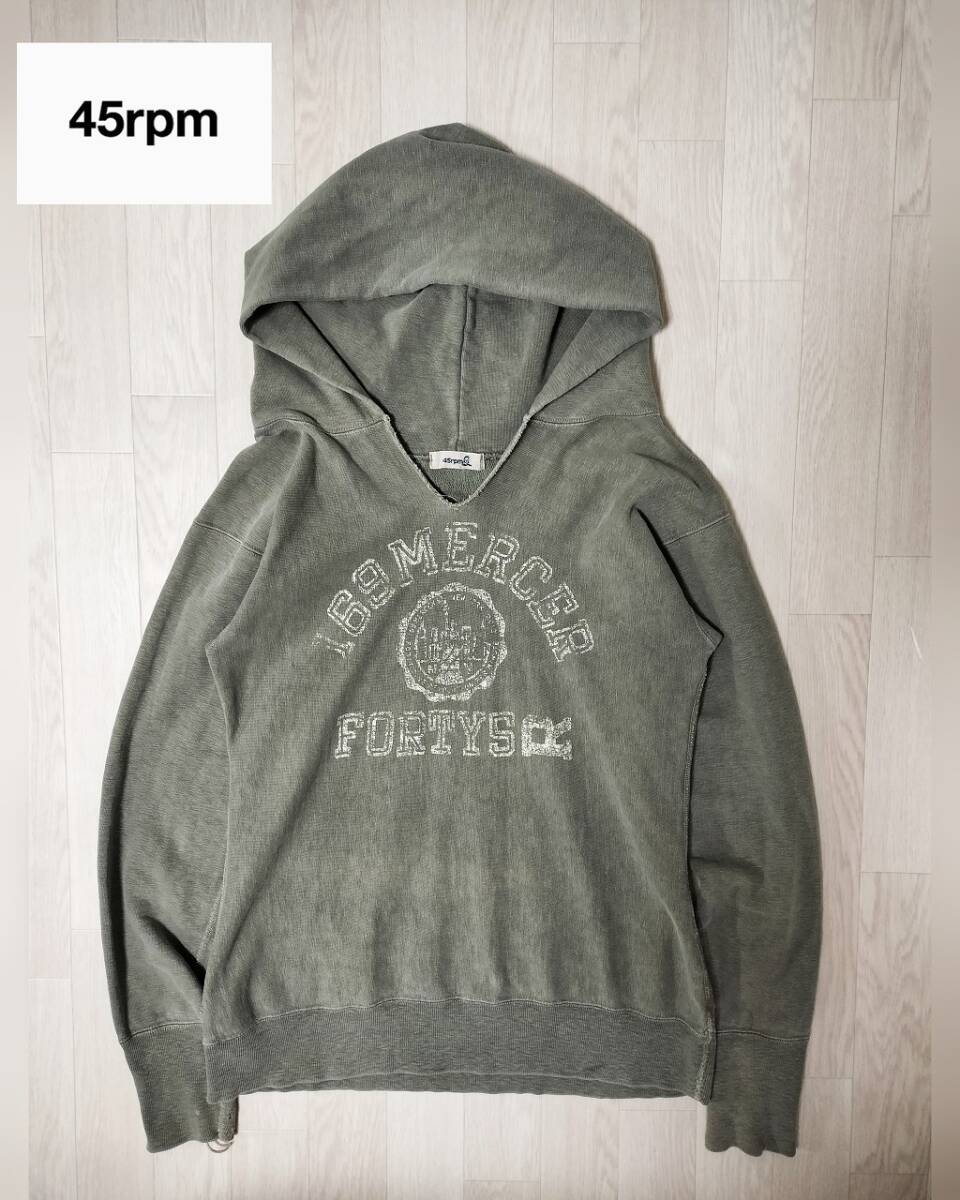 - 45rpm/フォーティーファイブ/オーバーダイプルオーバーフーディー/パーカー/後染め×汚れ×グランジ/ヴィンテージ加工/ロゴ刺繍