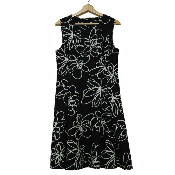 > ダナキャラン DKNY サイズ10 L - 黒×白 レディース クルーネック/ノースリーブ/ひざ丈/花柄 美品 ワンピース