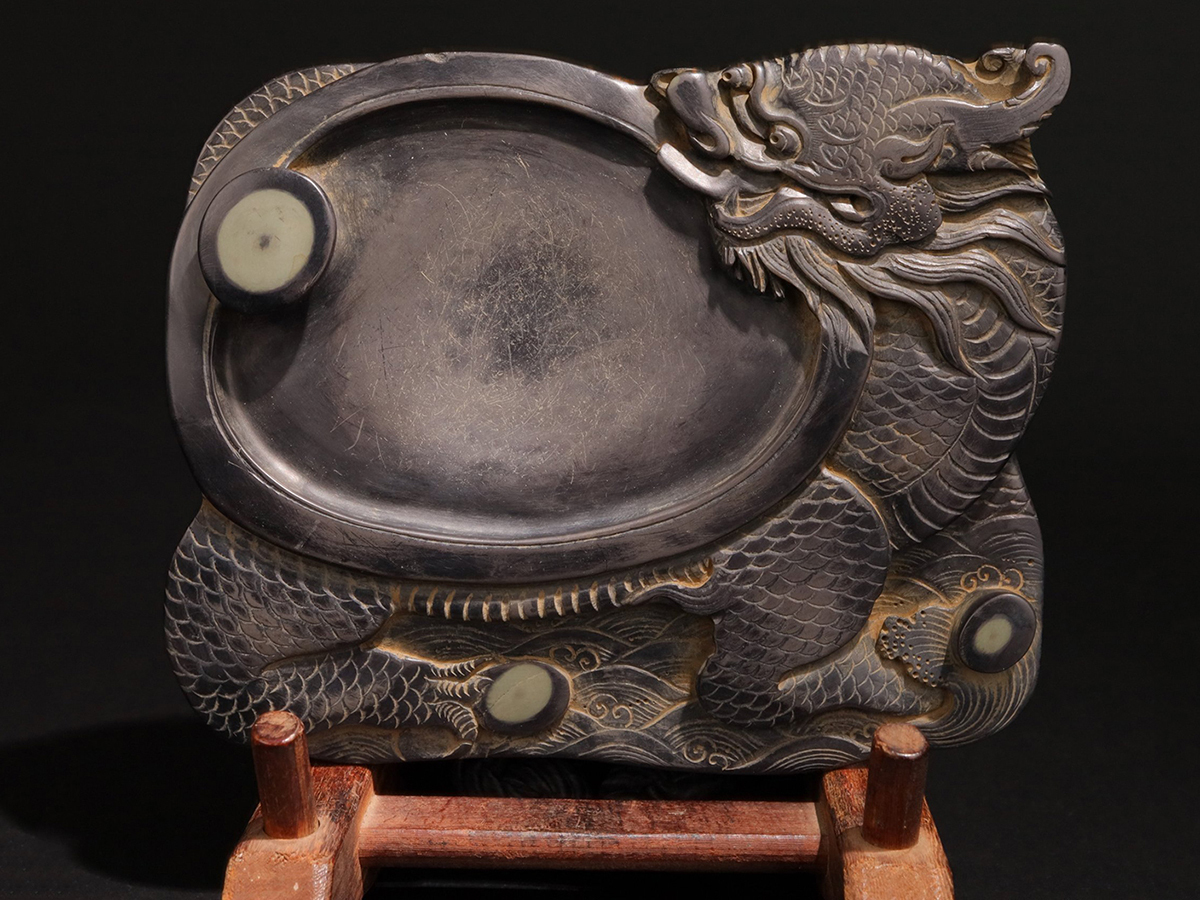 - ◆御泓軒◆『清朝時代 老坑端硯 龍亀献瑞紋端渓硯 汪応銓銘』極細工・古賞物・中国古玩・中国古美術