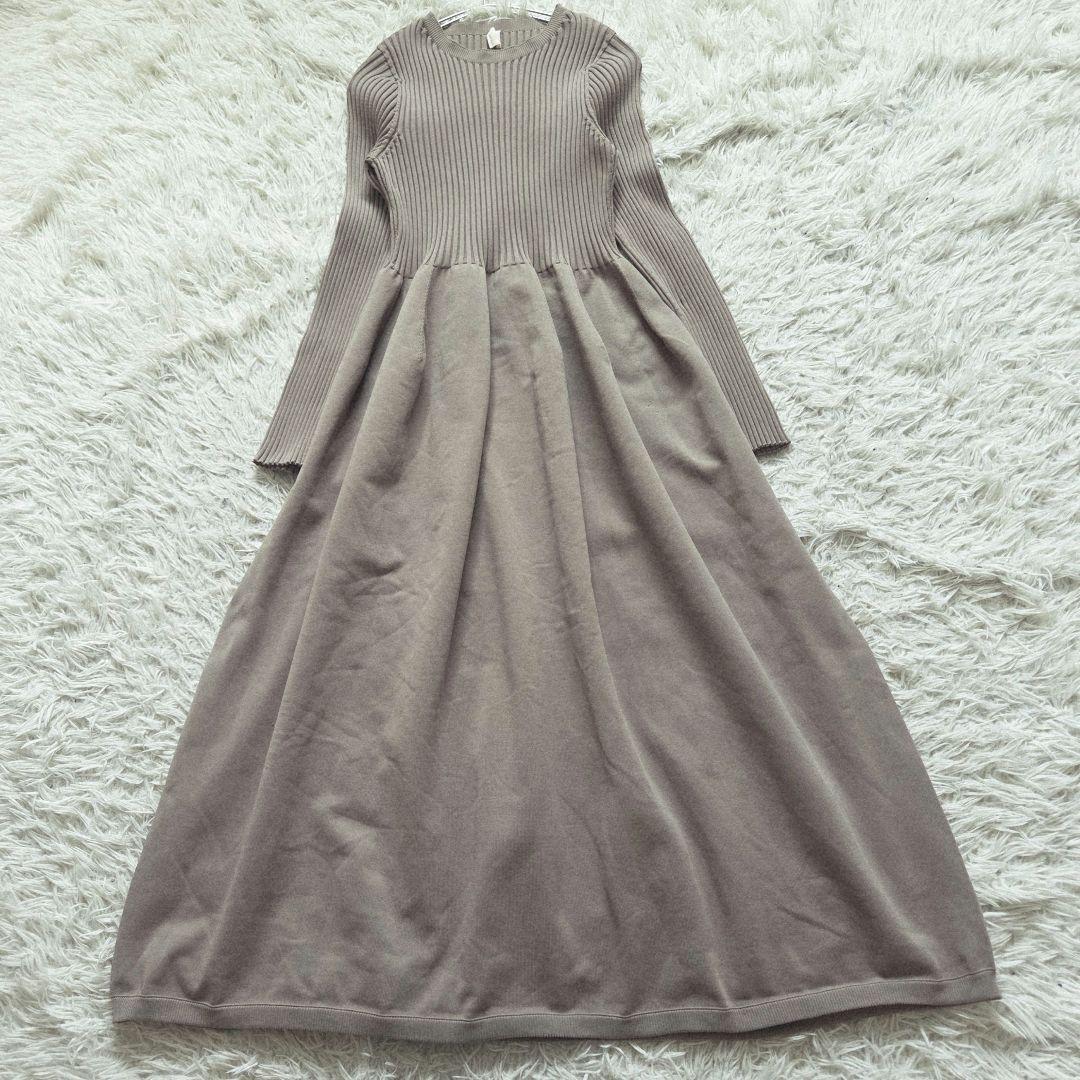 - THREE SQUARE フィット&フレアニット ロングワンピース リブ 光文社 スリースクエア