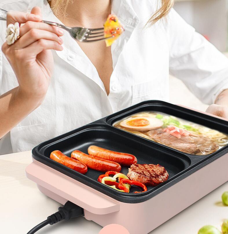 - 上質ホットプレート 鍋 おしゃれ かわいい 深型 グリルプレート 電気プレート 電気鍋 左右温度調整高火力 セパレート ガラス蓋深鍋結婚祝い