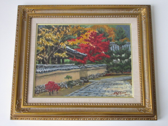 - 真作保証 酒見恒平「 寺の秋 」昭和57年 絵画 油彩 油絵 肉筆 F6号 額装品 元一水会員 真日本美術家連盟会員 国際造形協会会員