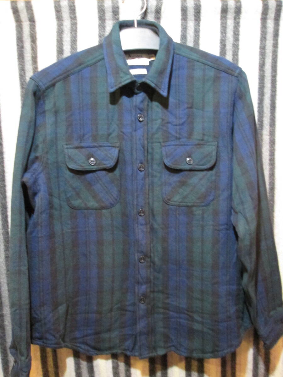- 古着、アルカルザ、ALCARZA(XLサイズ)ネルシャツ、厚手、ヘビーウェイト 黒色系グリーン系