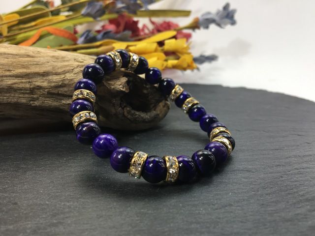 > パワーストーン ブレスレット パープルタイガーアイ (ロンデル:ゴールド) 8mm 開運 浄化 金運 仕事運 効果 レディース