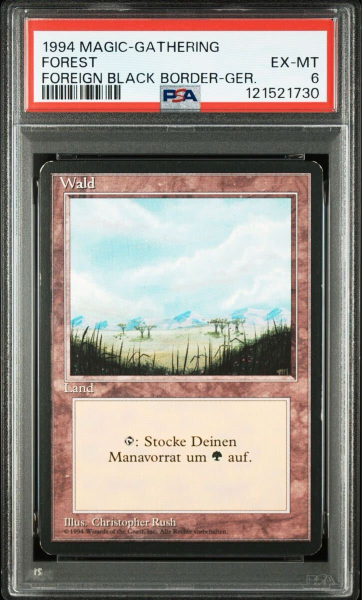 > 【PSA6】ドイツ語版 黒枠 エラーカード 名前:森 , イラスト:平地 MTG [Ebene / 平地 / Plains] FOREIGN BLACK BORDER FOREST GERMAN