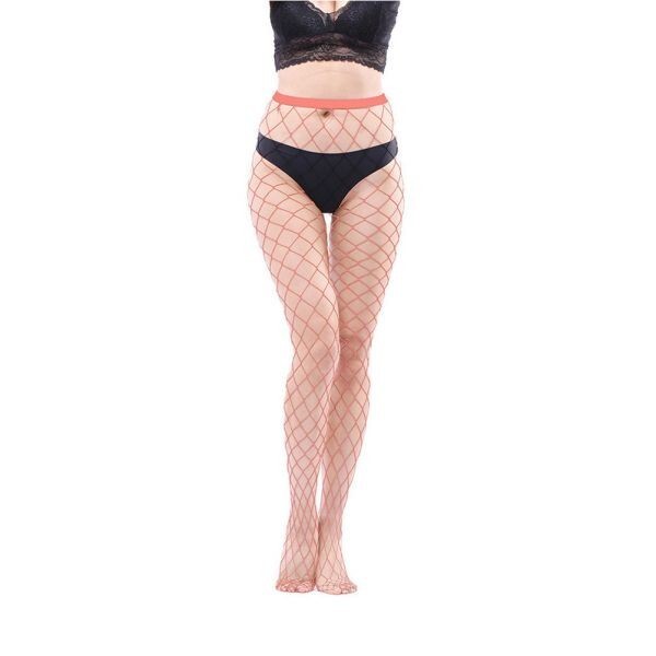 - ストッキング 網タイツ レディース 30デニール フィッシュネット ラッセルレース 大網目 オレンジ