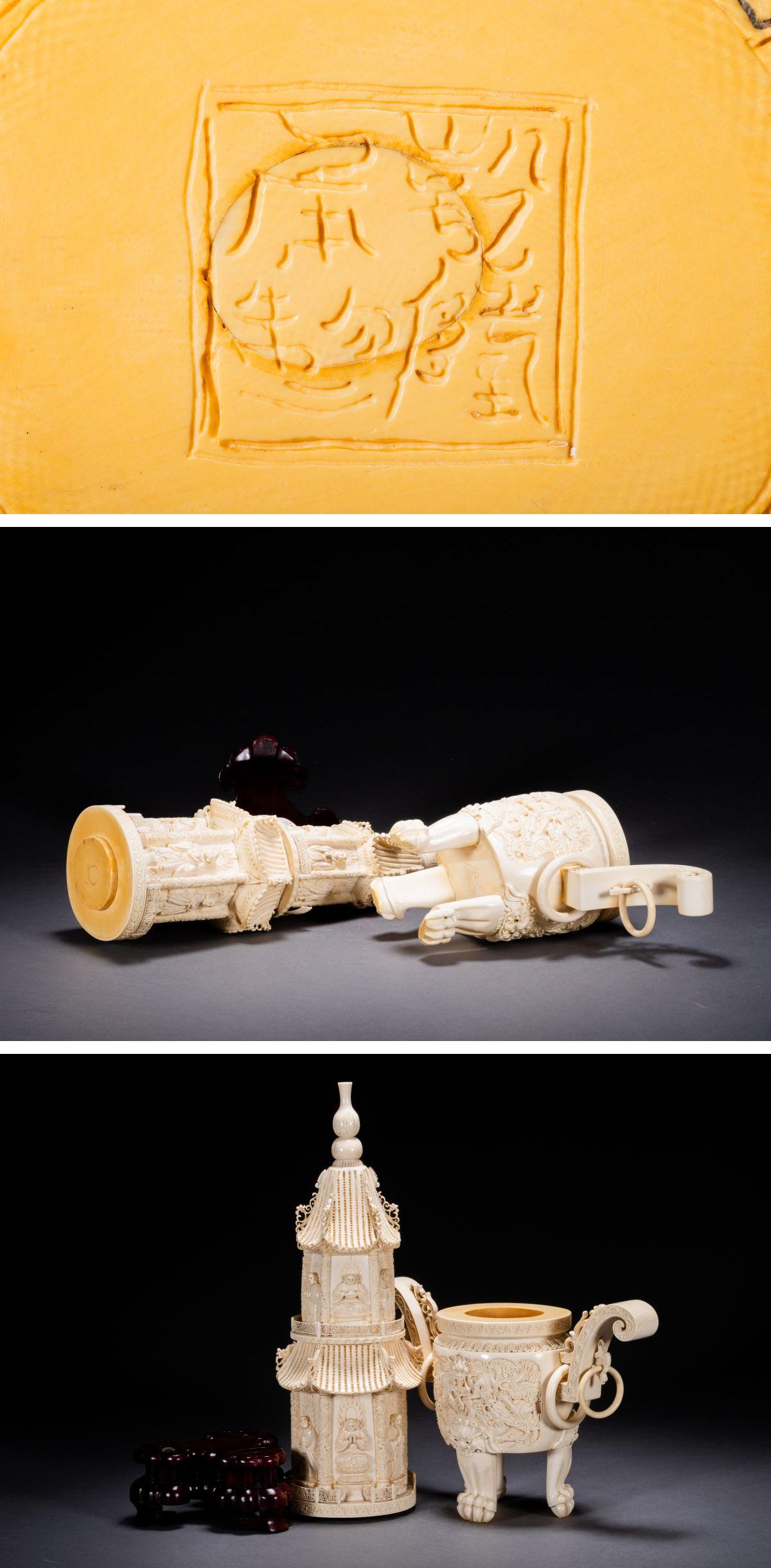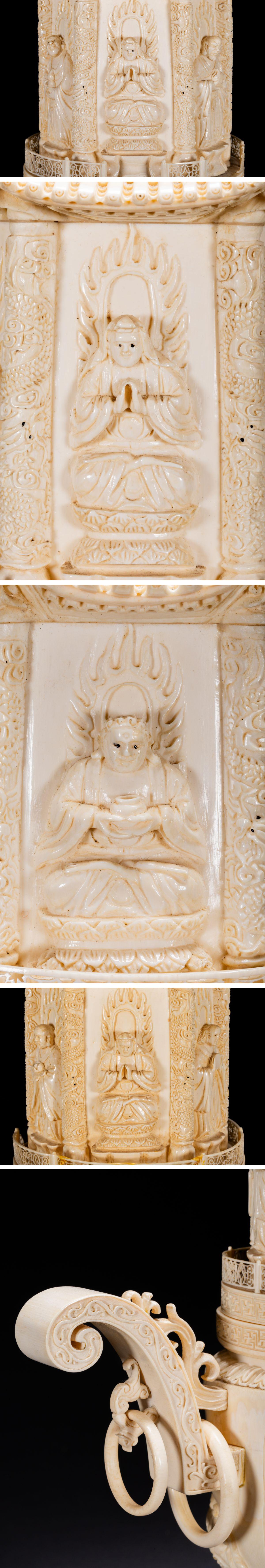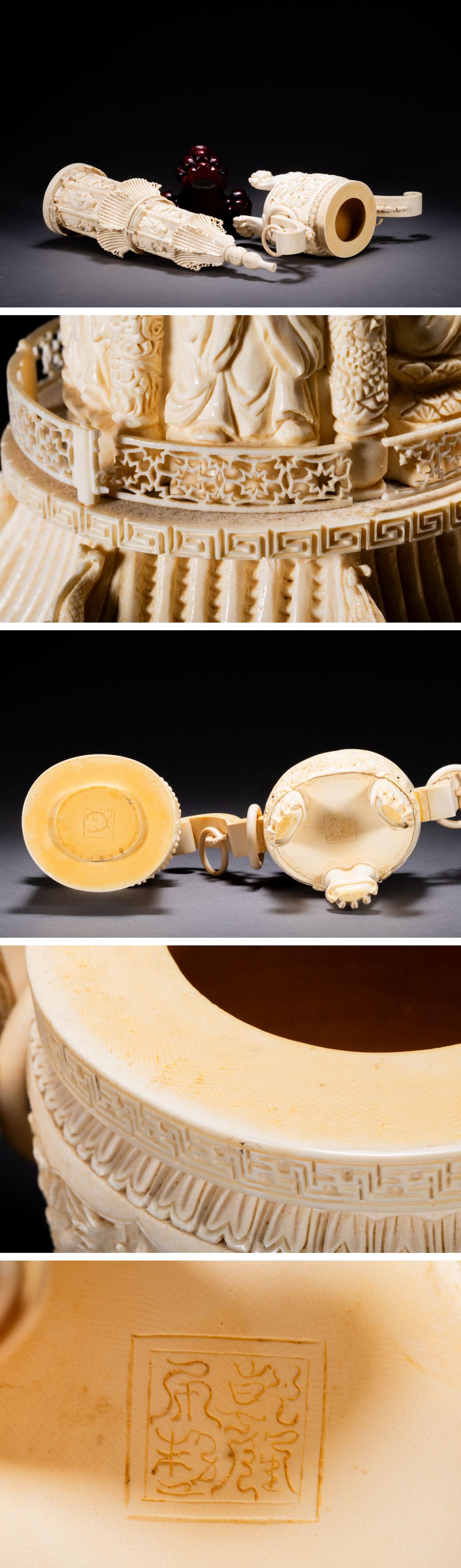 - 【雲錦】某有名オークション購入 時代物 特殊白材 釈迦三尊造像 巨大薫爐 古置物 古擺件 古美術 時代コレクションWK9-299S2