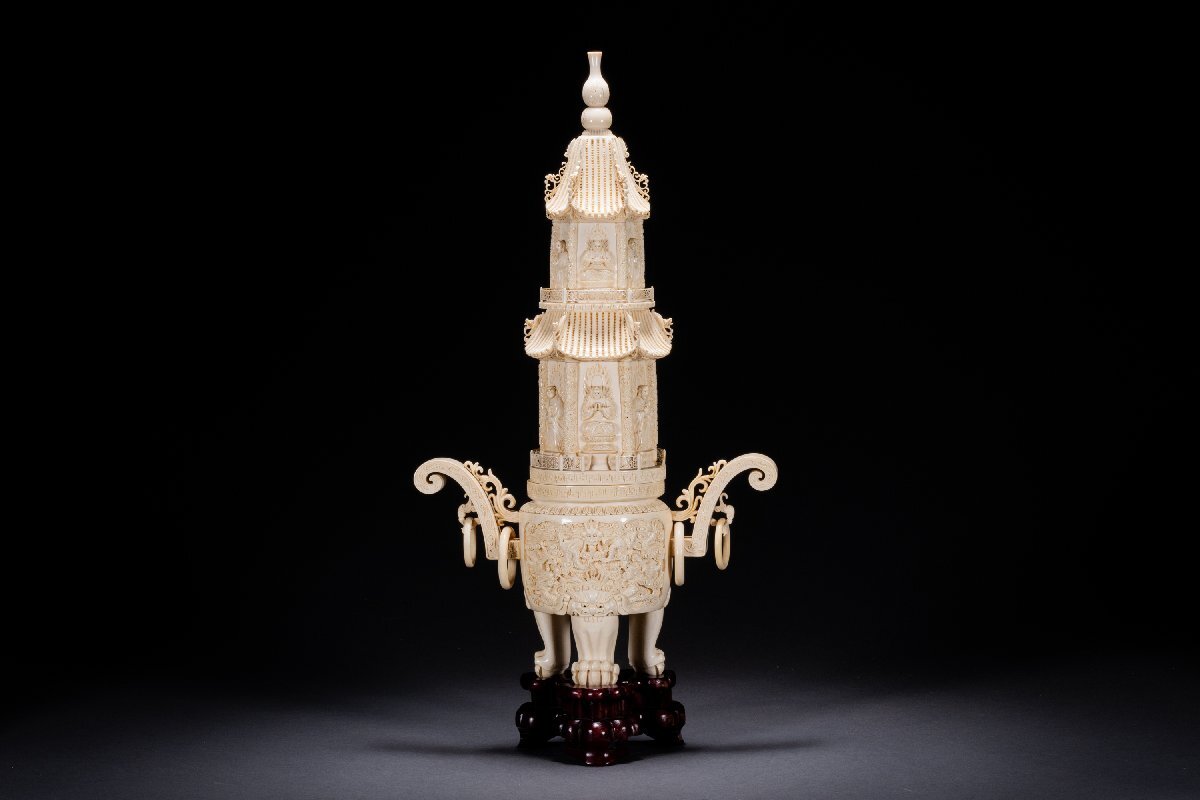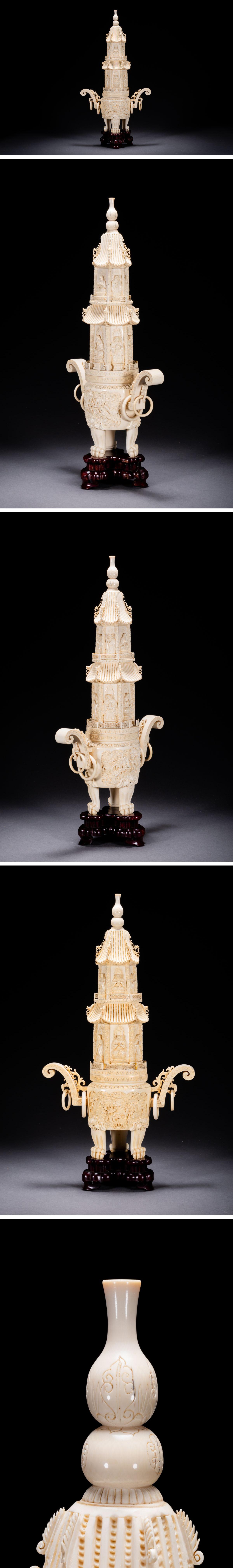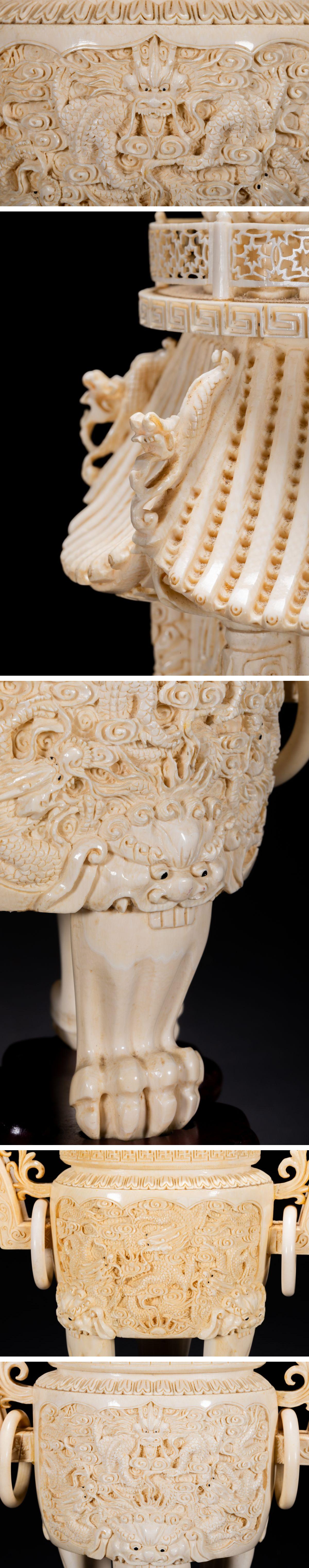 - 【雲錦】某有名オークション購入 時代物 特殊白材 釈迦三尊造像 巨大薫爐 古置物 古擺件 古美術 時代コレクションWK9-299S2