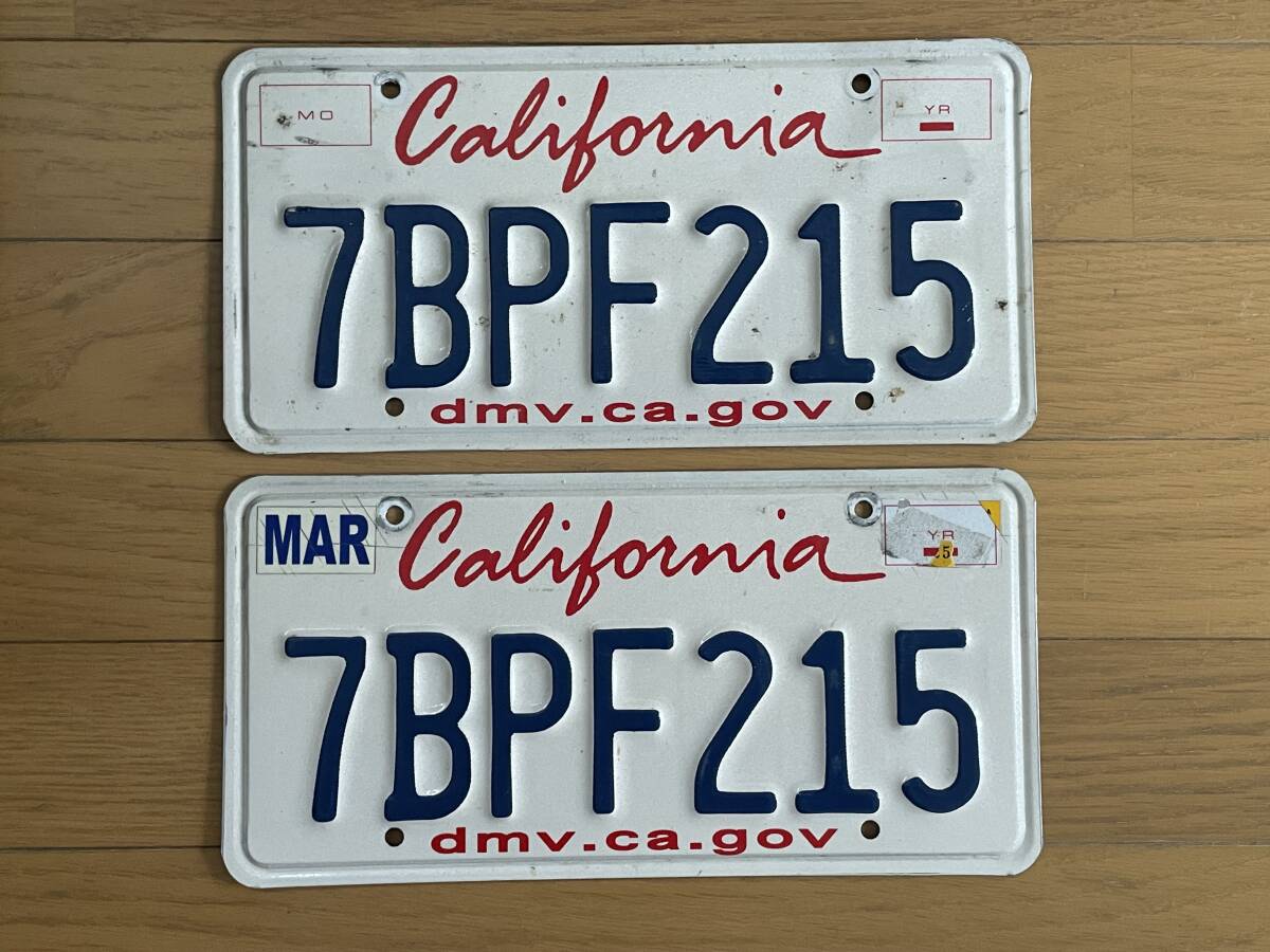 > カリフォルニア ライセンスプレート 7BPF215 2枚セット USDM 世田谷ベース 米国トヨタ シボレー フォード ロサンゼルス ナンバープレート
