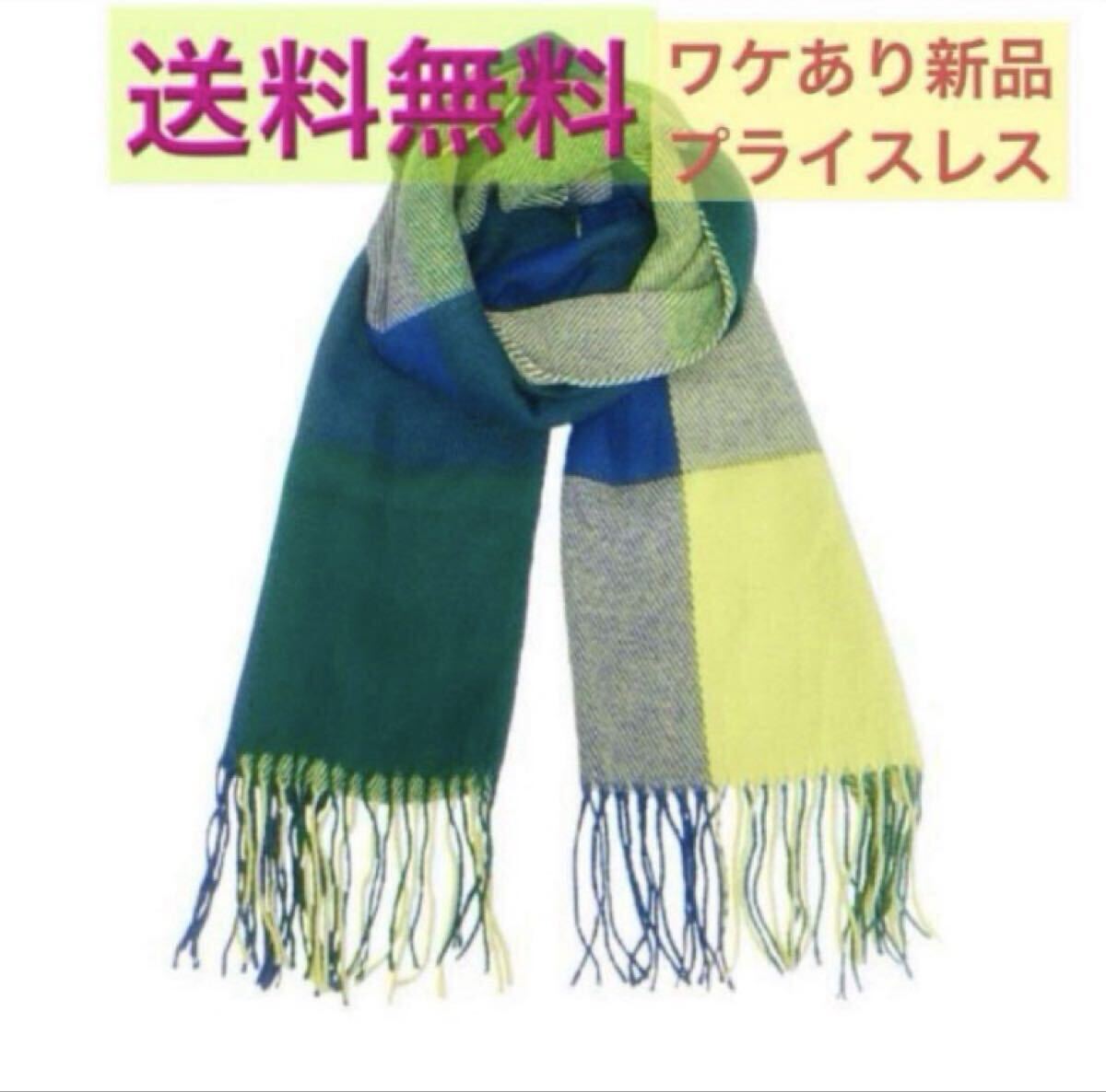- 450円!寒暖差に備えて!【ストール★カラー/グリーンアップル】あったか 薄手 チェック柄 マフラー ショール 訳あり新品 送料無料