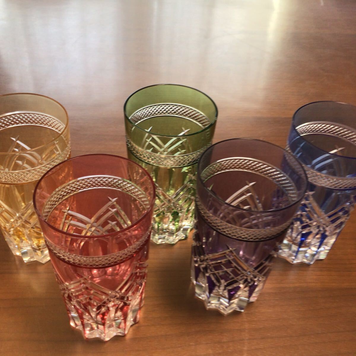 - カガミクリスタル サンクラール 5色タンブラー 江戸切子 斜格子紋 カガミクリスタル