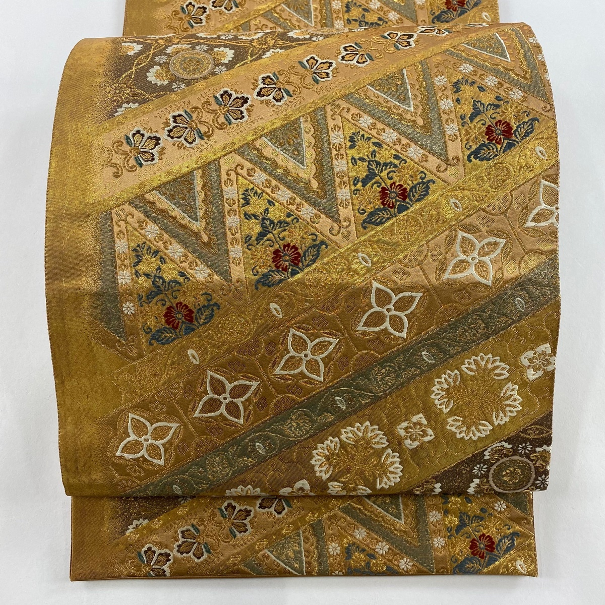 > 【美品】 袋帯 秀品 松 橋 箔 螺鈿 銀色 お太鼓柄 正絹 【中古】