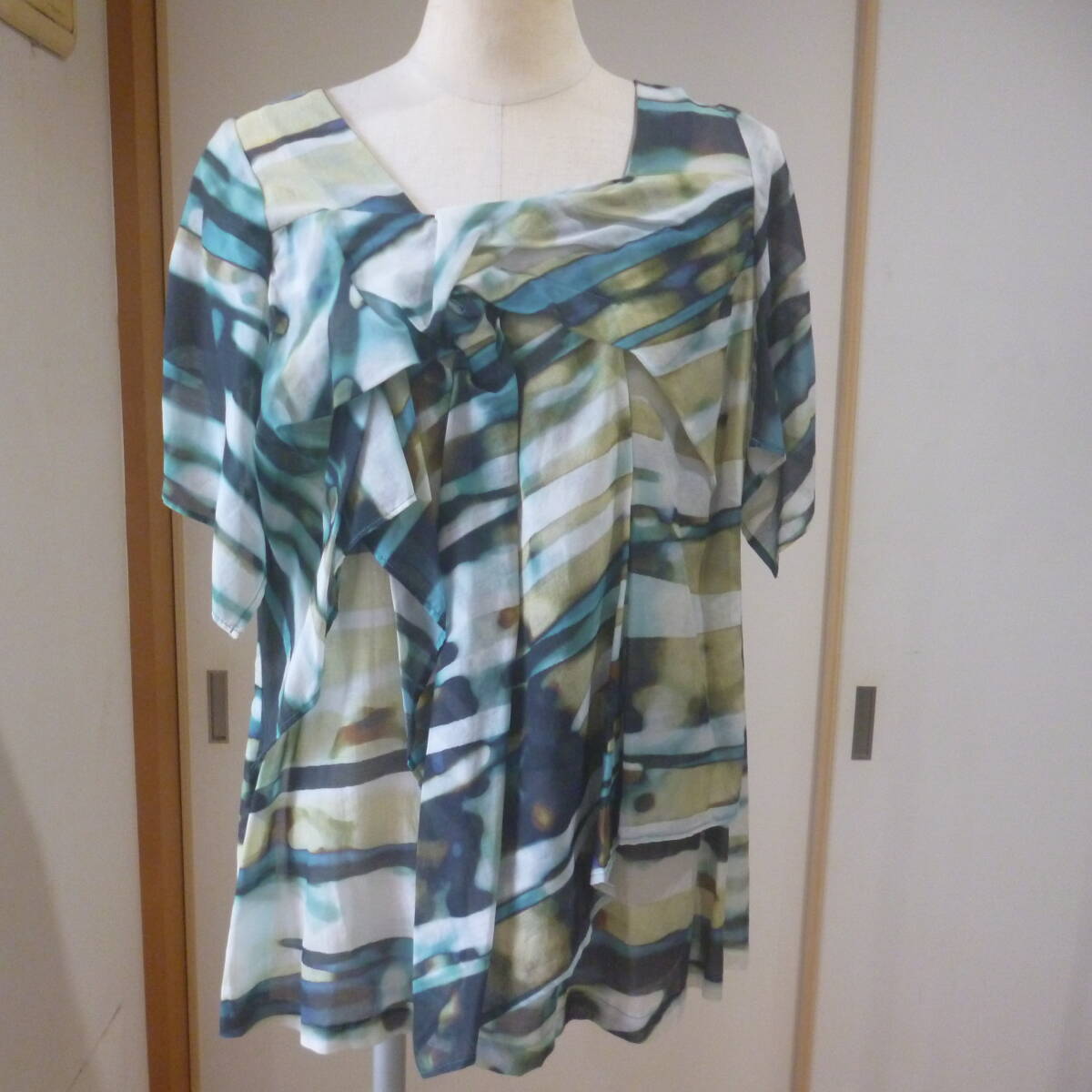- RITSUKO SHIRAHAMA リツコシラハマ ブルーグリーン系 半袖デザインブラウス 新品未使用 タグ付き 定価37,800円