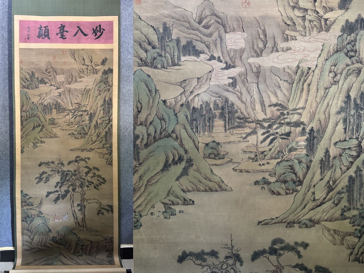 - 中国書画「明 仇英 松渓閑図」肉筆絹本 掛け軸 墨寶妙品 書画立軸 巻き物 古美術 旧蔵出