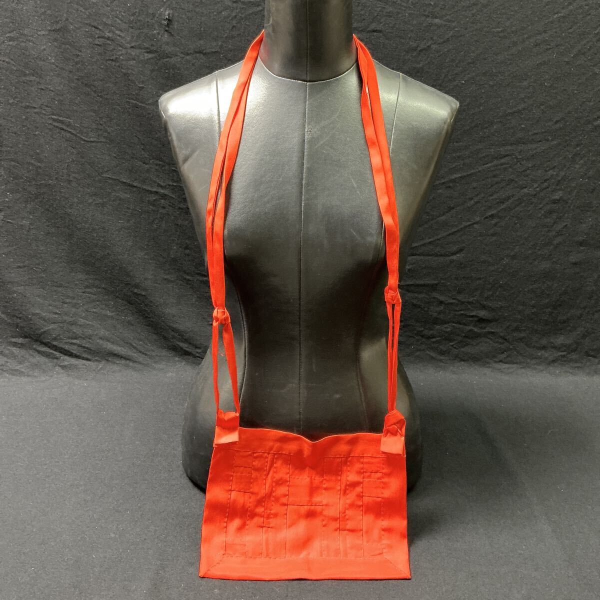 - 【LLB635】真言宗 小野塚五條袈裟 絹 無地 緋色 朱色 法衣 法要 装束 着物 僧侶 お坊さん