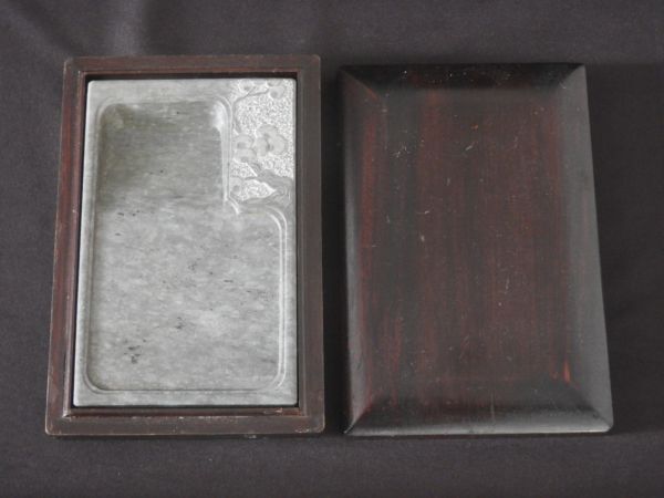 - (a-2) 硯 端渓 天然石 木箱 習字道具 緑端渓 【送料無料】