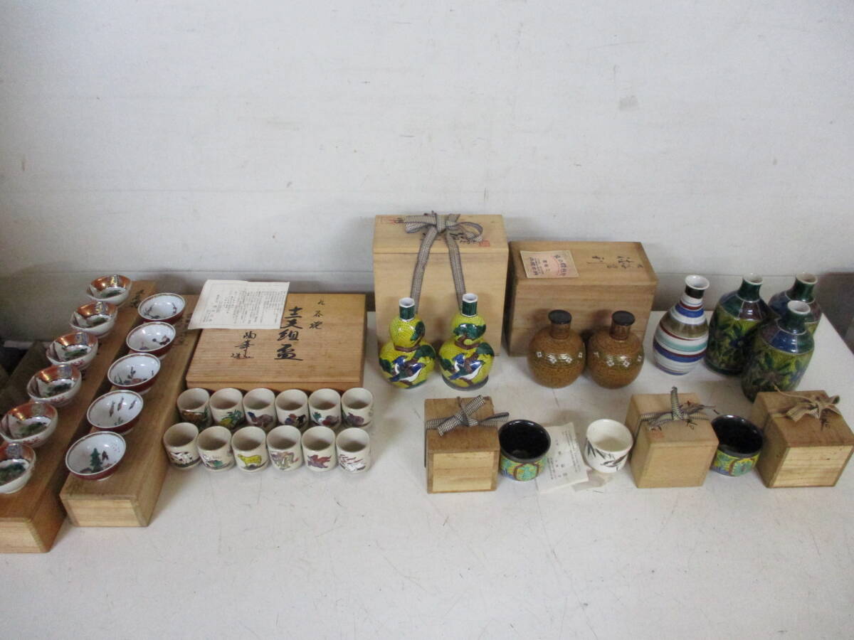 > S-377【10-5】■7 未使用長期保管品 九谷焼 酒器まとめて 徳利 ぐいみ お猪口 角福 染付 蒔絵 金彩 焼物 陶磁器 / (7/19)