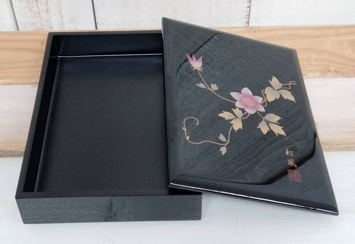 > *会津塗 黒鉄仙 鉄仙 *葉書入れ 小物入れ 文箱 道具箱 *新しい彩 松風 *未使用保管品 *漆塗 *紙箱付き