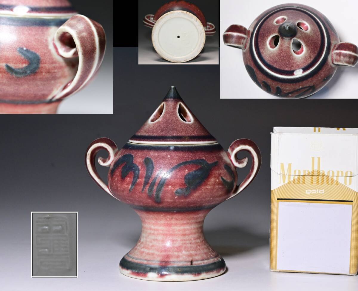 > 陶雅堂■小森忍 作■ 辰砂 釉裏紅 窯変釉 耳付 香炉 難有 箱無 真贋保証 香道具 茶道具 大阪市生 /山茶窯 北斗窯 満州 大連 検:中国美術