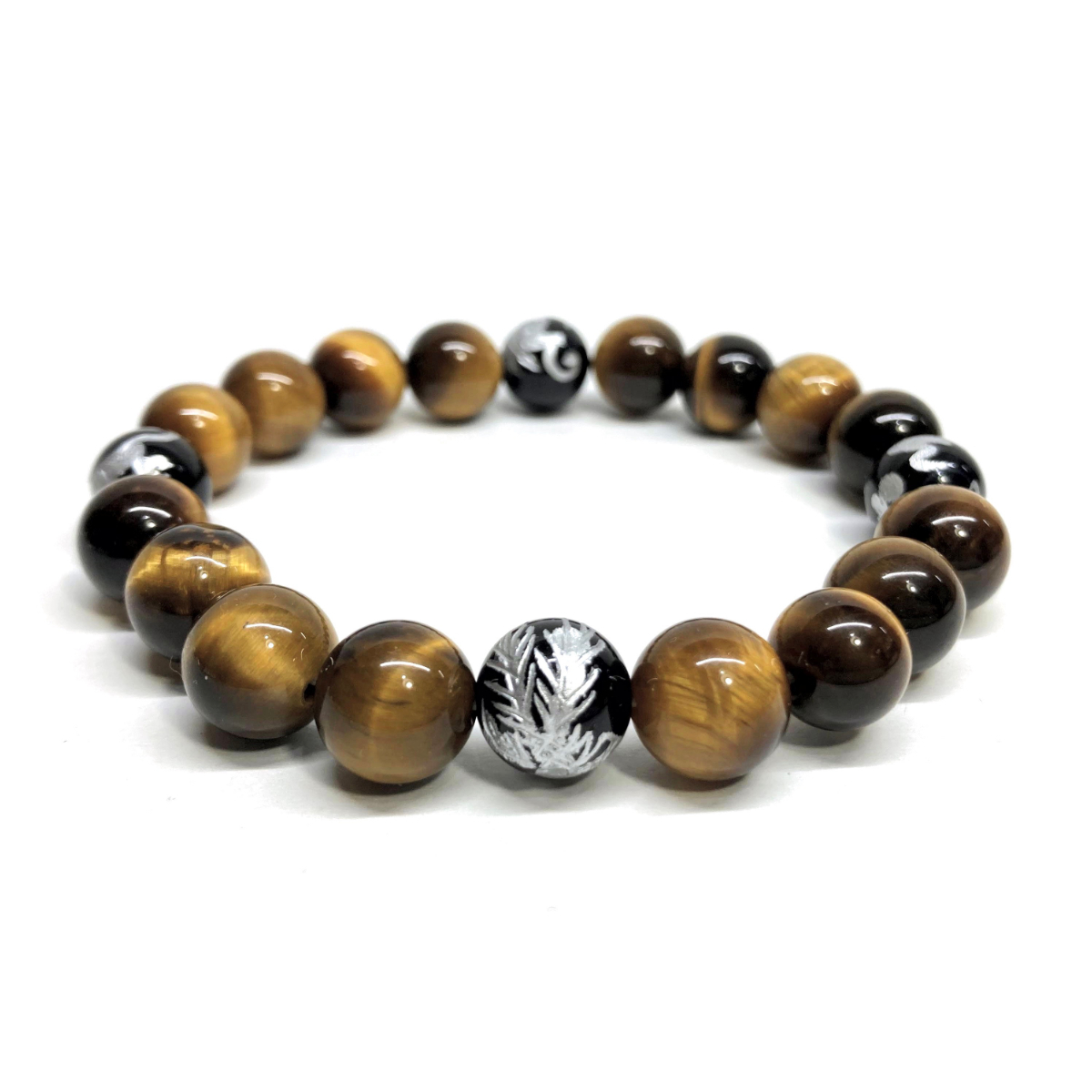 - 10mm 四神獣銀彫オニキス×タイガーアイ パワーストーン ブレスレット天然石 運気上昇 開運 金運 恋愛運 青龍 白虎 玄武 朱雀 ☆