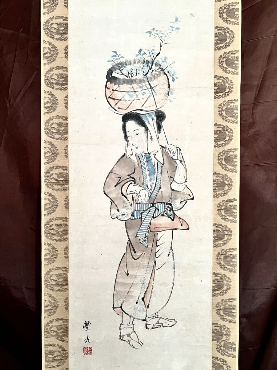 - 【真作】【S8】岡本豊彦「大原女」紙本 肉筆 合箱 美人画 歴史風俗画 絵画 掛軸 江戸後期の画家 岡山の人 四条派 師: 黒田綾山 松村月渓
