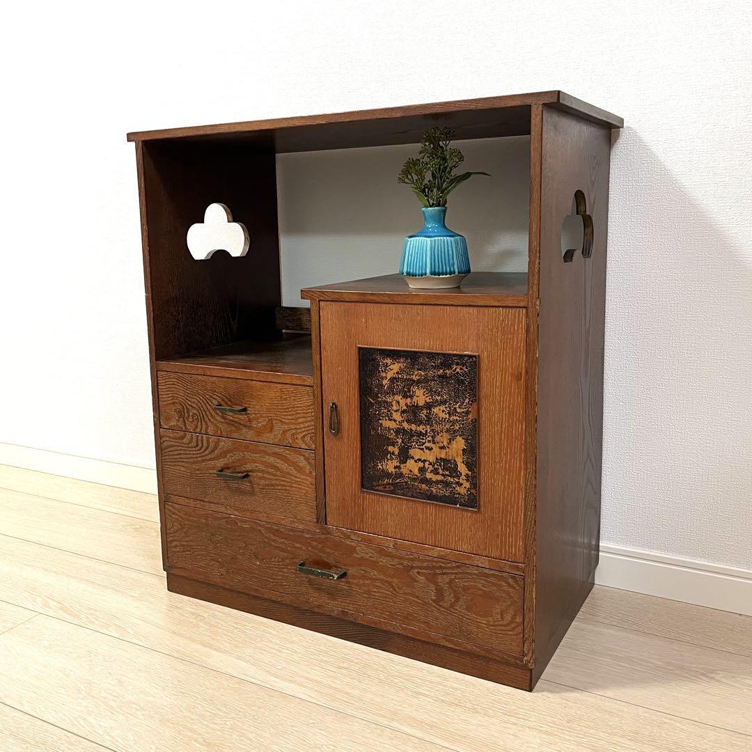 - (そ76)ヴィンテージ 茶箪笥 飾り棚 茶箪笥 タンス たんす 茶道具 Vintage Japanese Chadansu Wooden Tea Cabinet with Sliding Door
