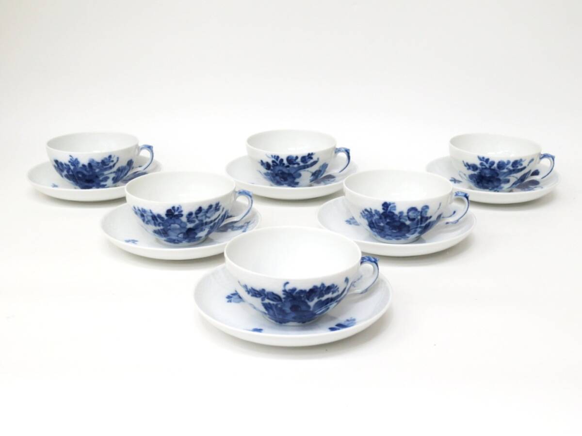 > 【9-199】 ROYAL COPENHAGEN ロイヤルコペンハーゲン ブルーフラワー ティーカップ&ソーサー 6客