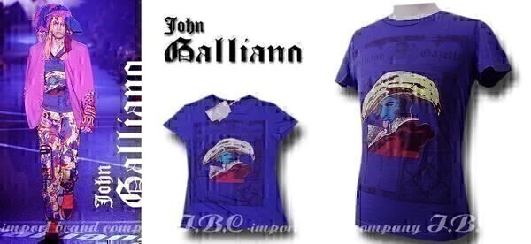 > 名作★galliano ジョンガリアーノ 希少デザインナポレオンプリントTシャツ ブルーパープル青紫 SizeM【本物保証】入手困難廃盤モデル