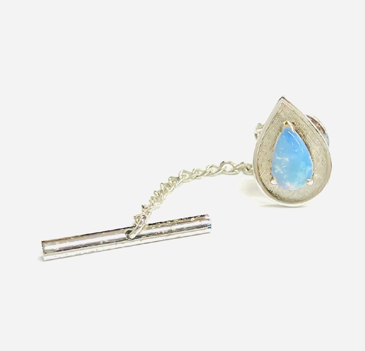 - YZV04 18K ホワイトゴールド オパール しずく型 タイピン qoj.YZV04