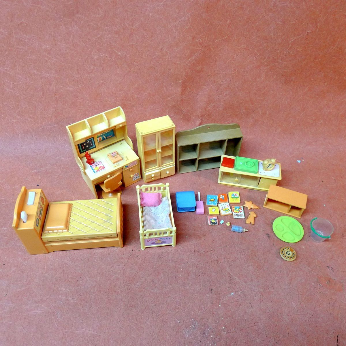 商品名・TAKARA タカラ シルバニア 3年2組のなかまたち 勉強机 棚 ベッド 他 家具まとめて