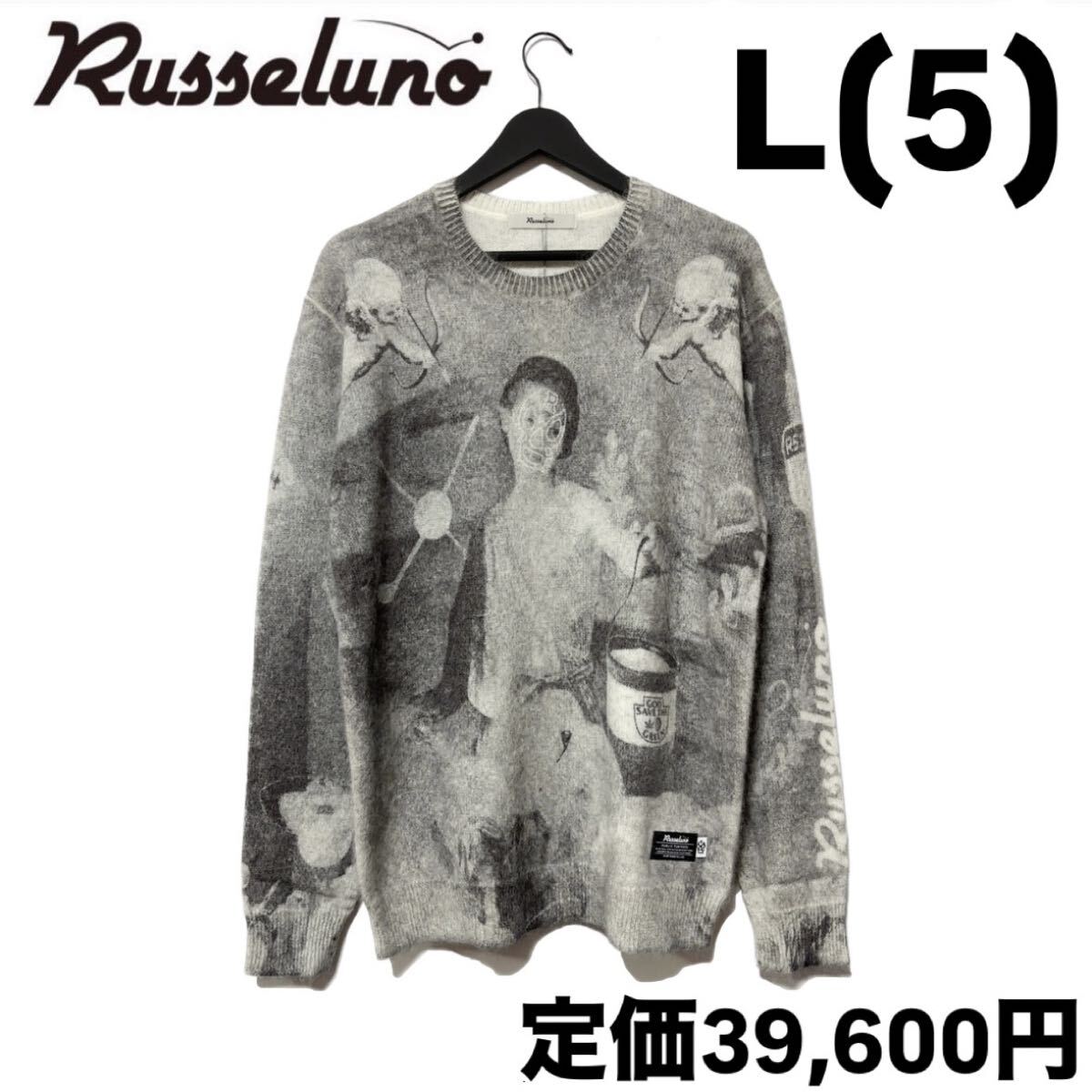 > 新品 ラッセルノ ゴルフ グラフィック ニット セーター ブラック L 5 ゴルフウェア ストリートウェア RS-2240503