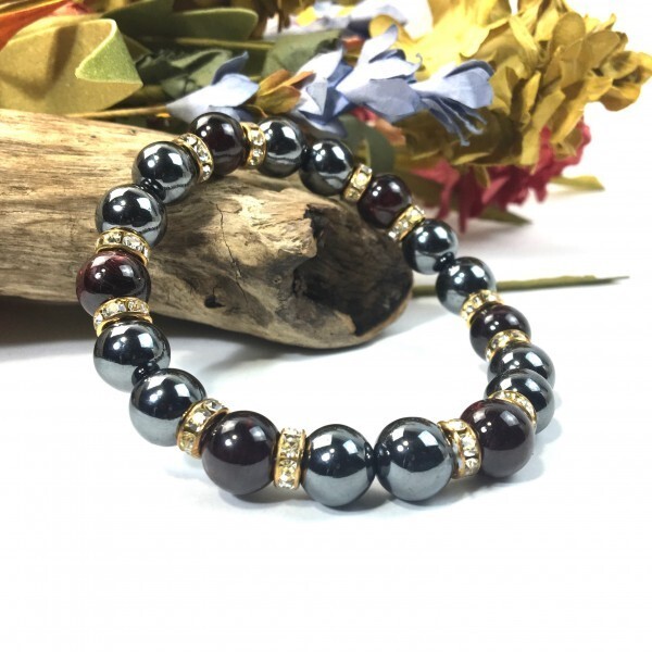 > ヘマタイト×ガーネット パワーストーン ブレスレット 天然石ブレス (ゴールド) 10mm メンズ・レディース 健康運 勝利 還暦祝い