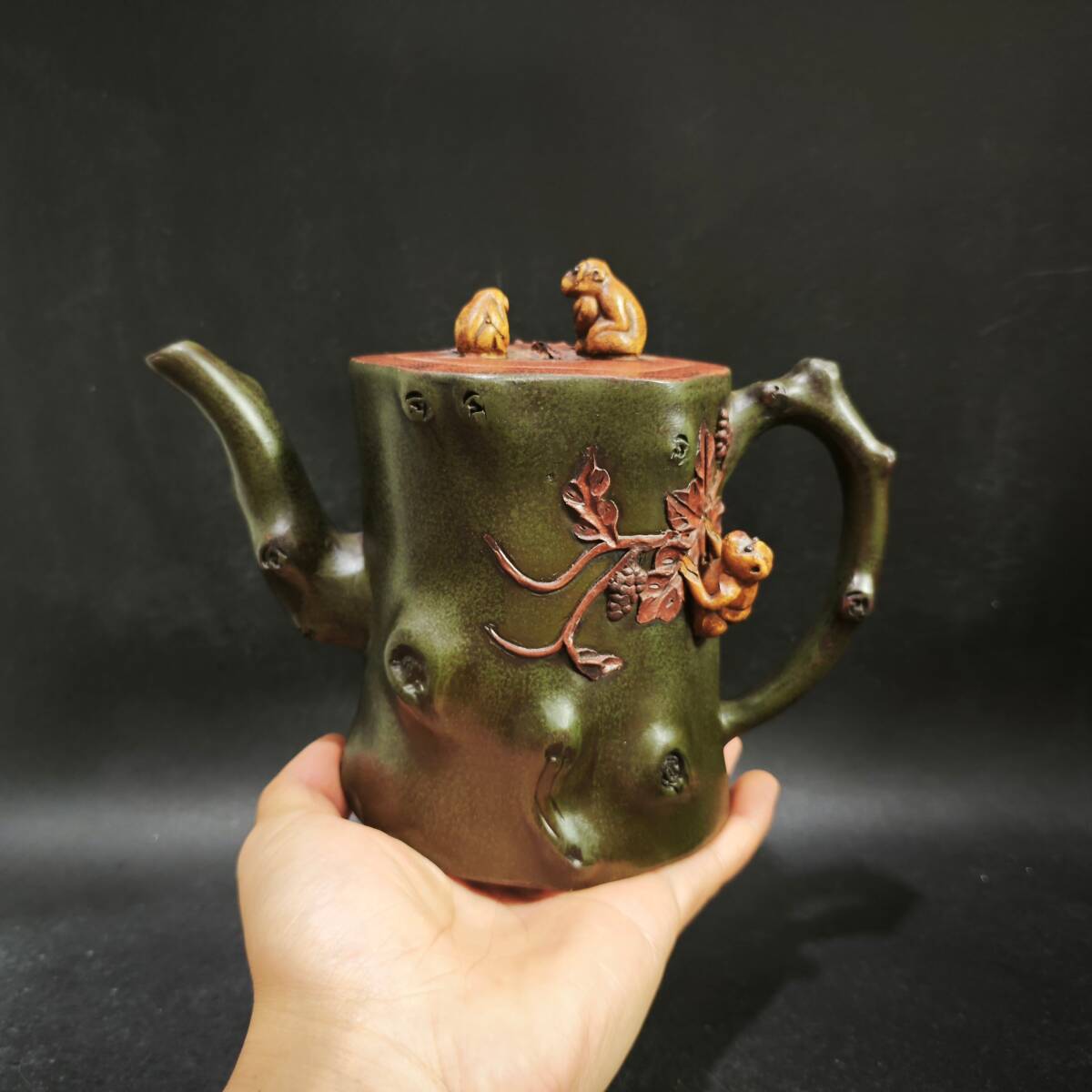- 【超珍館蔵】紫砂壺 猴子樹くい壺 蓉款 清水 茶具 茶道品 置物 賞物 古賞物 古董品 古美術品 時代物 旧家蔵出 稀少珍蔵品