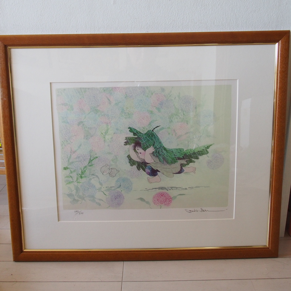 - 【真作】中島潔 『通り雨』 240/500 直筆サイン リトグラフ