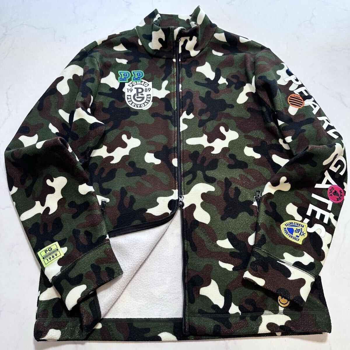 - 美品 L相当◎PEARLY GATES フリースジャケット ニコちゃん ロゴ カモフラ 迷彩 ダブルジップ 近年 5 ゴルフウェア メンズ パーリーゲイツ
