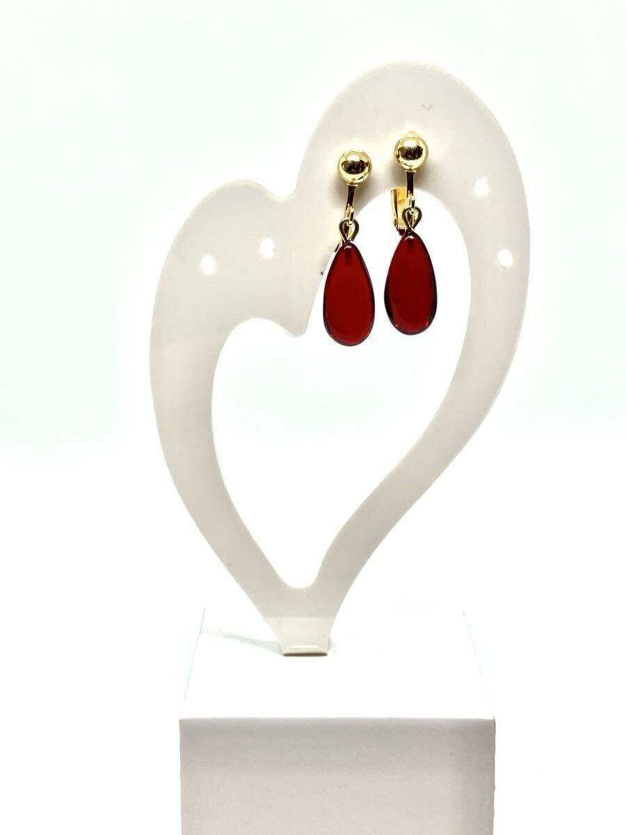 > 【新品】リトアニア産レッド琥珀イヤリング*アンバー*こはく*コハク*チェリーアンバー*揺れるデザイン*ネジバネ式