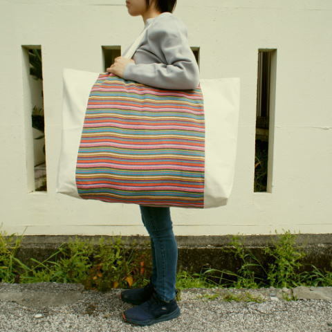 - 入園準備【レギュラーサイズ】新品!1900円洗える!エスニックボーダープリントお昼寝布団バッグ