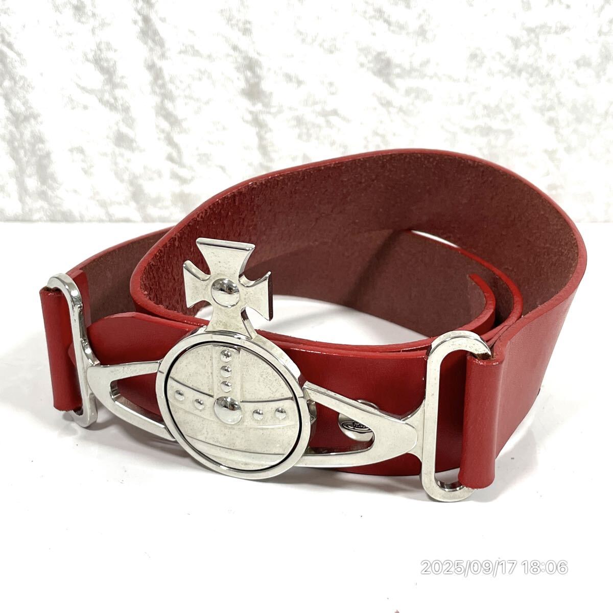 - vivienne ヴィヴィアン ウエストウッド オーブ シルバー金具 レッドカラー レザー 革 調整可能 ベルト ファッション アイテム 装飾品