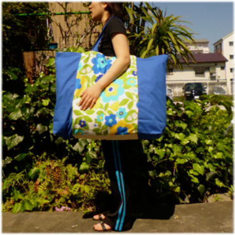 - 入学、入園!新品1900円ポップフラワー(青)昼寝布団バッグ手作り小物