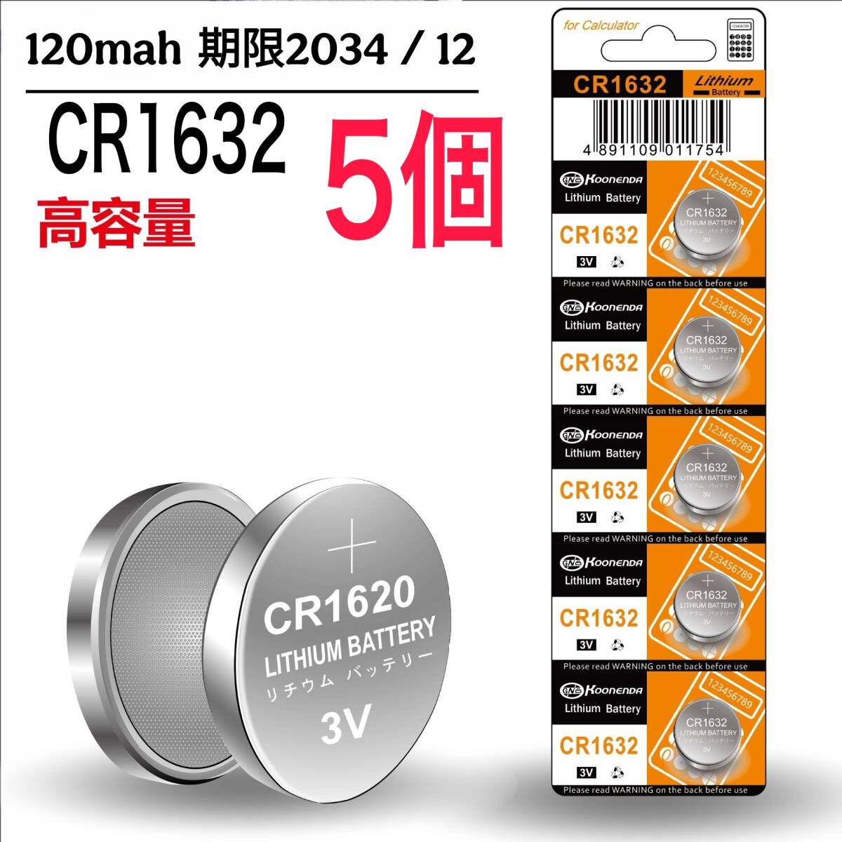 > ボタン電池 CR1632 (3V 120mah)【5個セット】 消費期限2034/12 リチウムコイン電池 DL1632 容量偽装なし