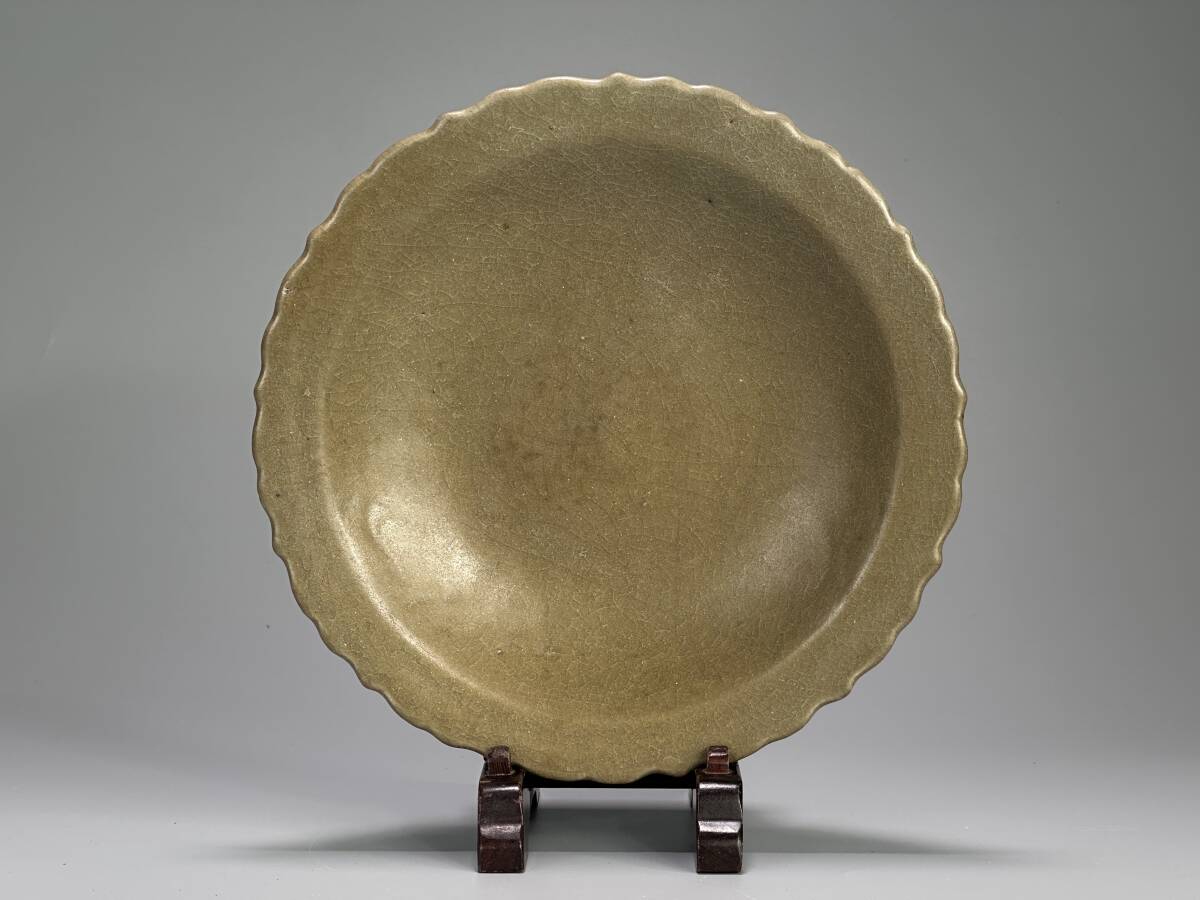 - 33US28 中国美術 元~明時代 龍泉窯 黄龍泉窯 青磁 花口盤 皿 時代物 唐物