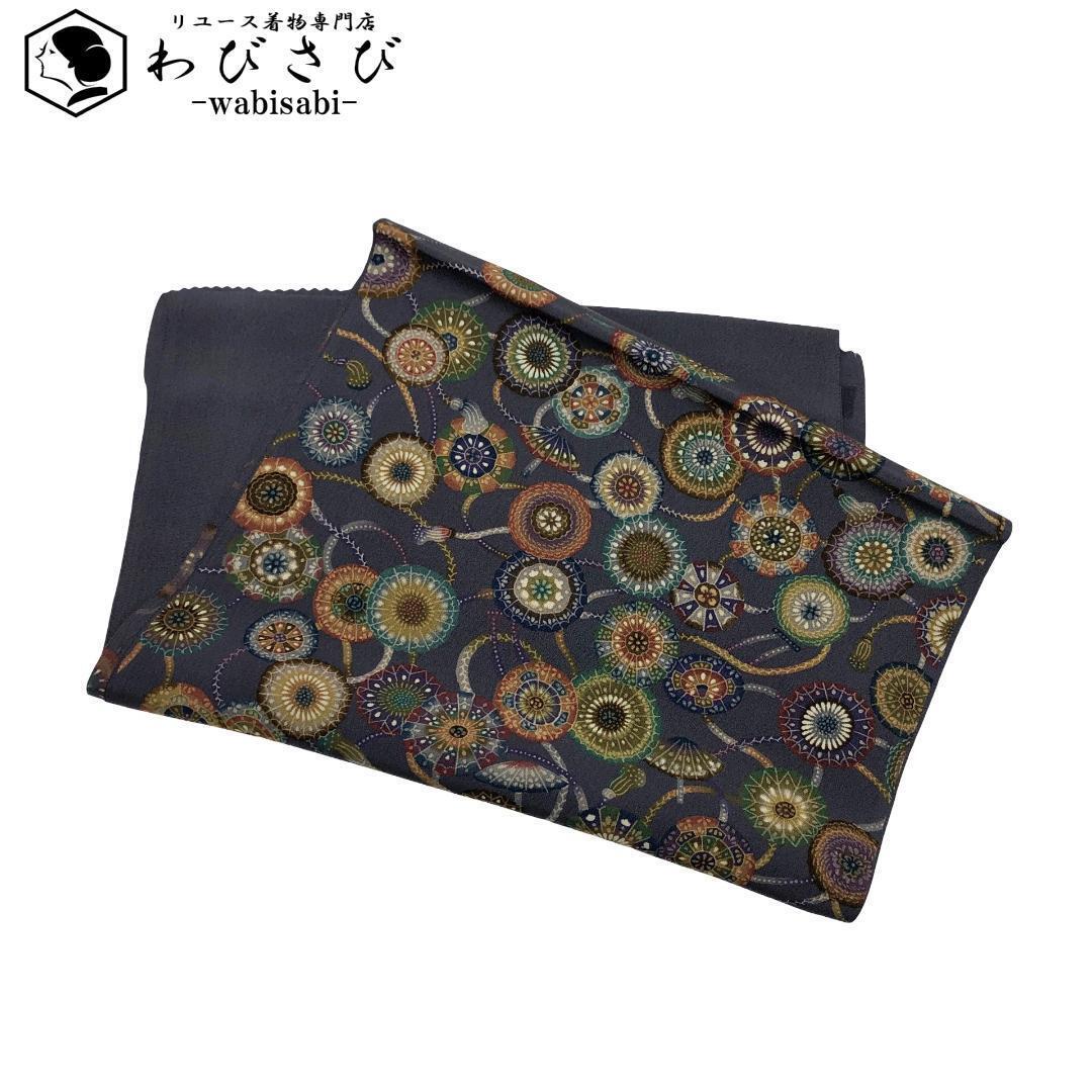 - 和装小物 帯揚げ 正絹 綸子 組紐に華模様 藍鼠色 C-6530 着物 きもの kimono 和服 和装 中古 リサイクル着物 【送料無料】