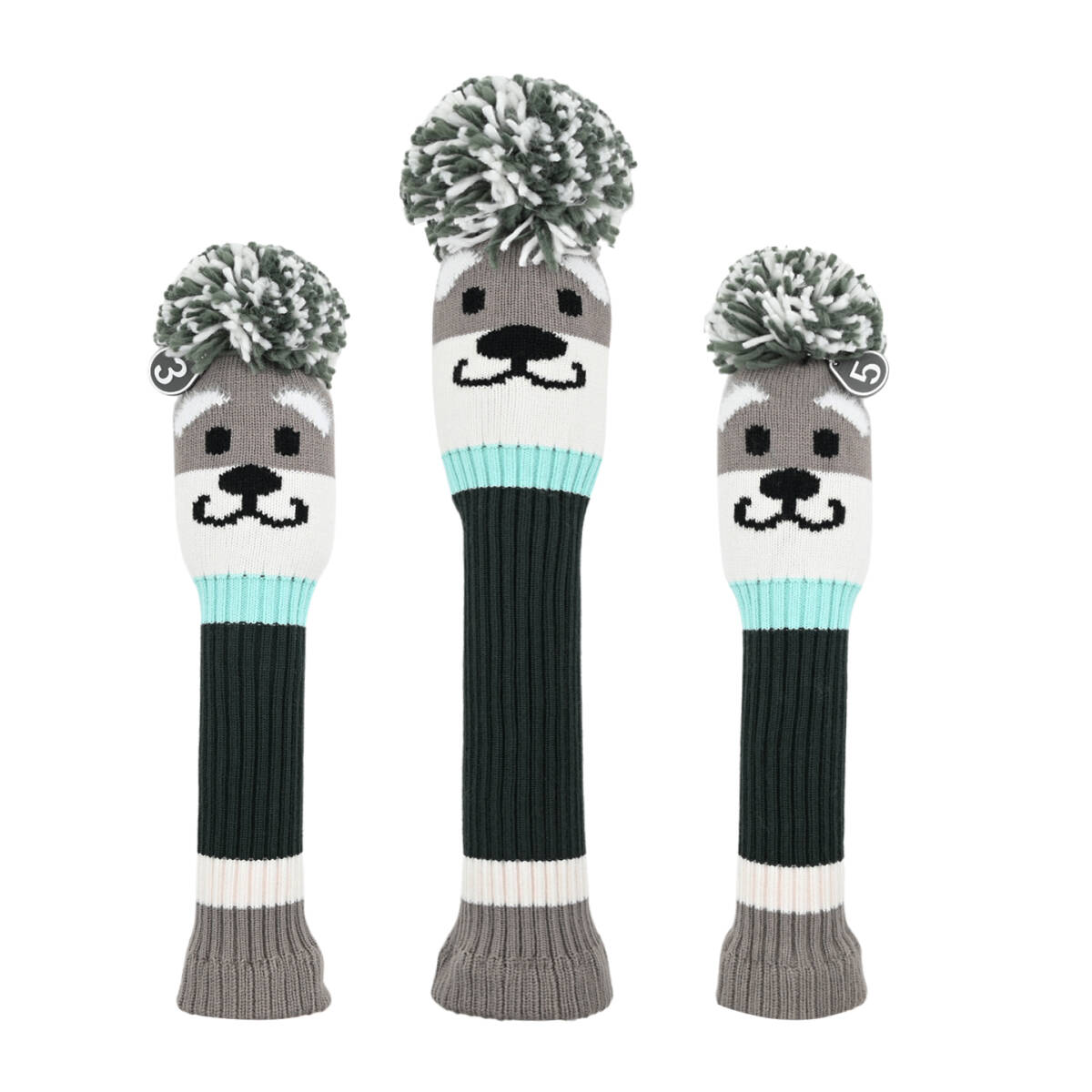 - ゴルフヘッドカバー ニット製 ダイヤシリーズ 1#3#5#用 ペンダント付け 3点セット シュナウザー