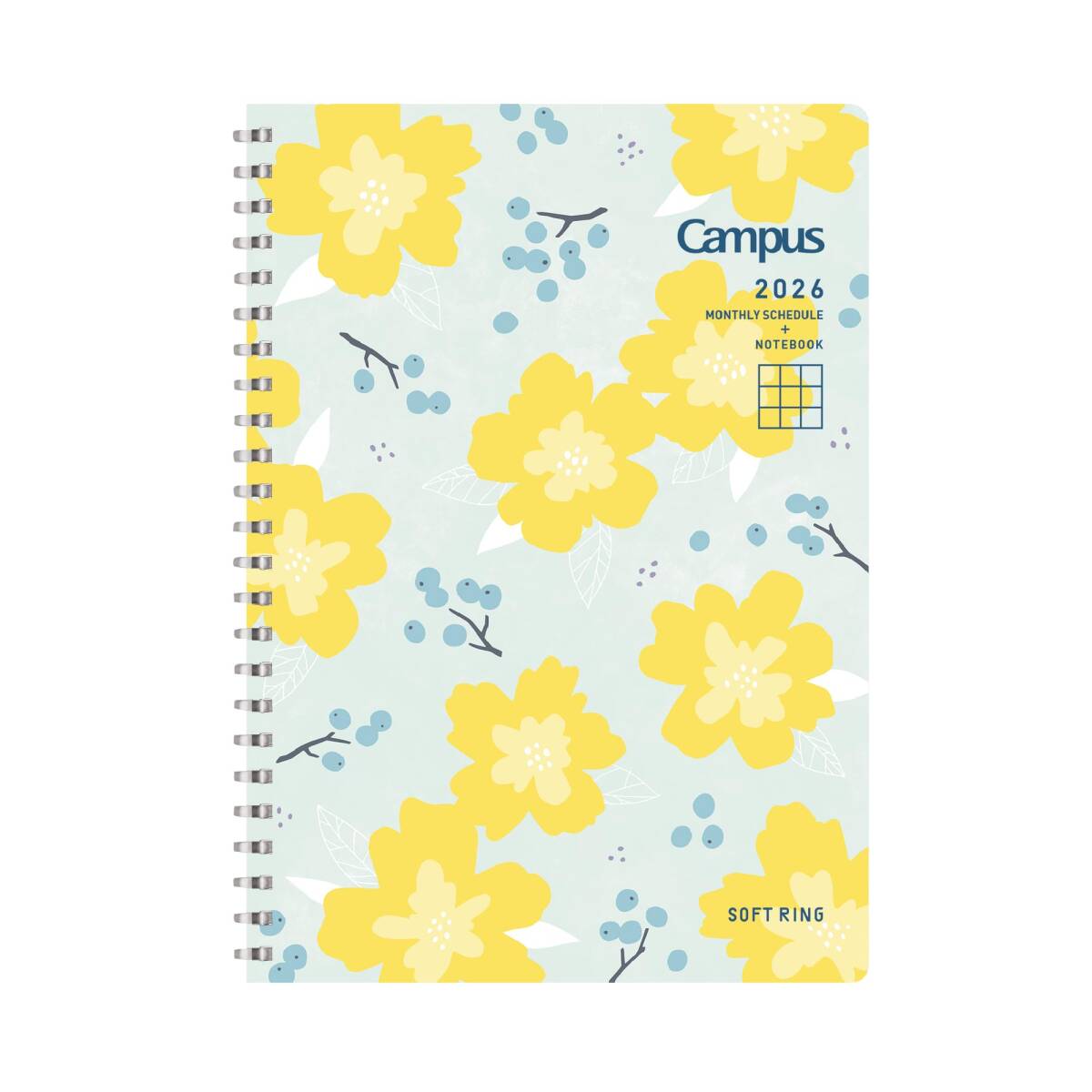 - ソフトリング ダイアリー キャンパス マンスリー ブロック 2026 A5 フラワー柄 手帳 ニ-SMNL1-A5-26 2025