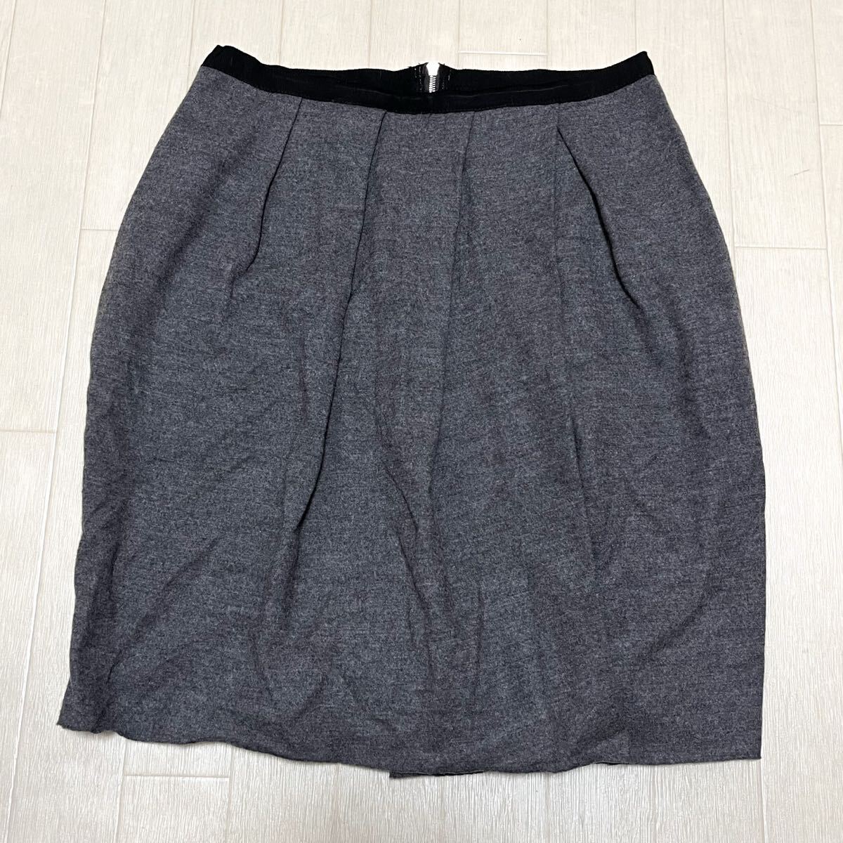 - 和850★ LANVIN en Bleu ランバンオンブルー タイトスカート 膝丈ほど 38 グレー レディース