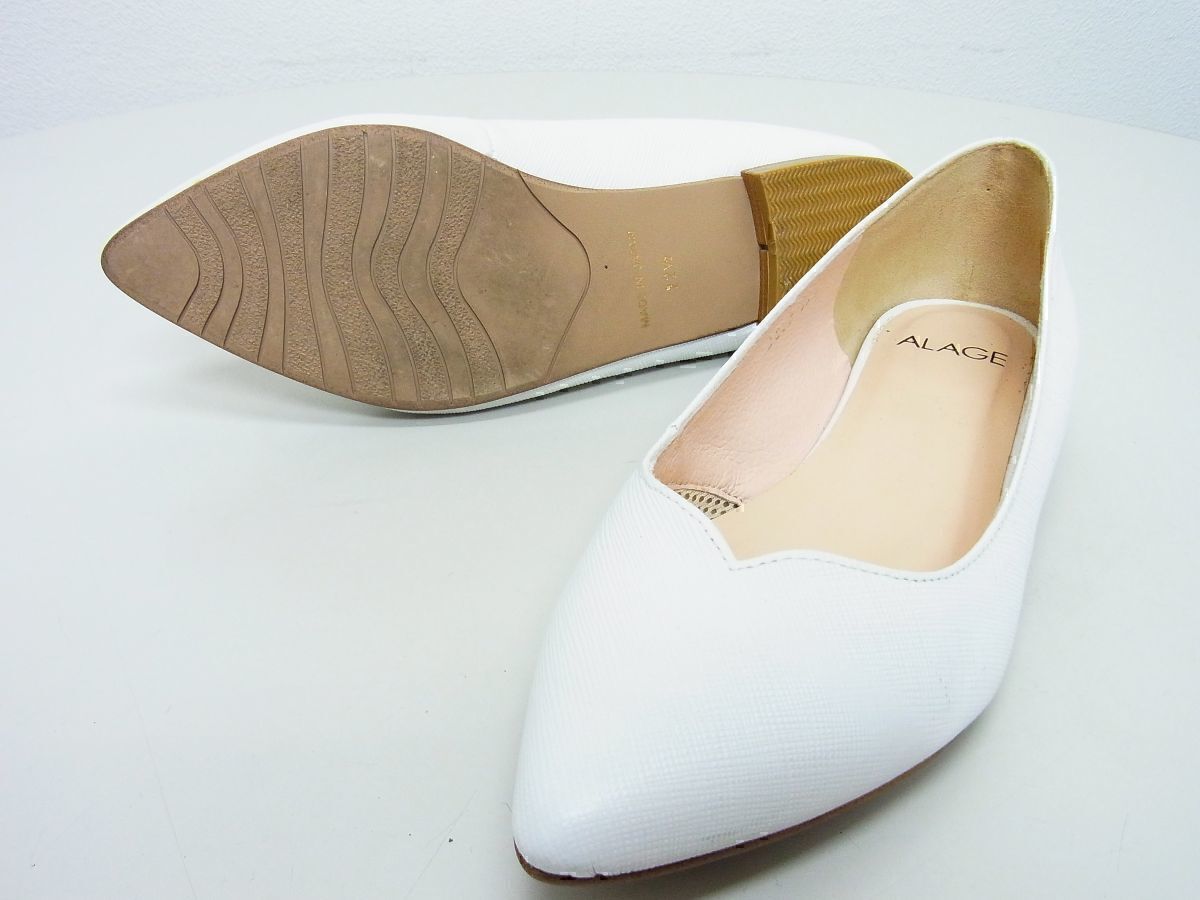 > ★中古品★AKAKURA アカクラ★ポインテッドトゥローヒールパンプス★22.5cm【正規品】ホワイト白【本物保証】ALAGE★汚れあり