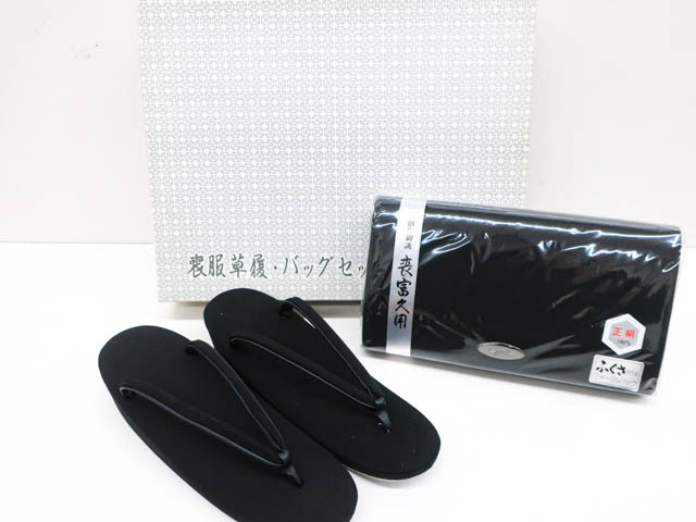 - 《京都一輝堂》【着物】和装小物 草履バッグセット 喪服用 未使用品 25w01-748
