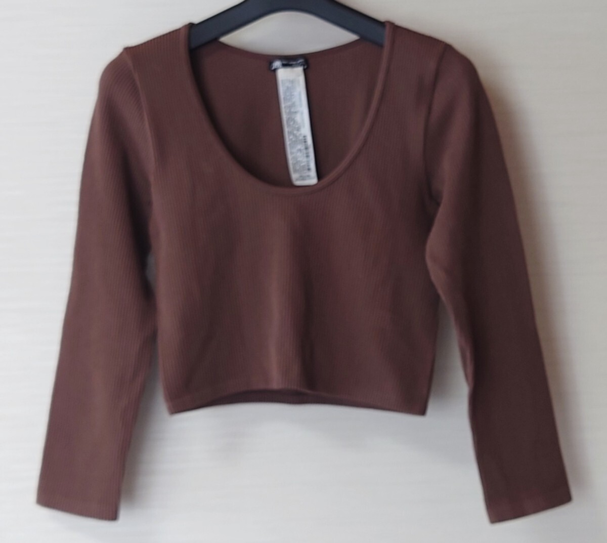 - ZARA ブラウン 茶 長袖リブカットソー M−L 送料230円〜