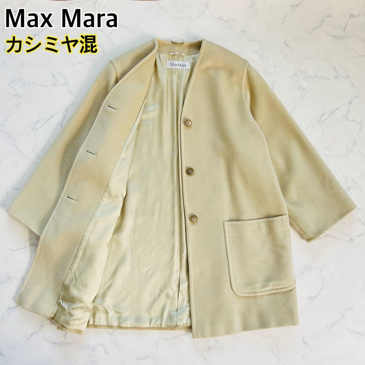 > 【最高級白タグ】Max Mara マックスマーラ カシミヤ混 カシミア ウール ロングコート ノーカラー オーバーサイズ オフホワイト L